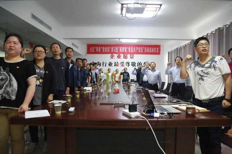 2018年5月10日,區委書記謝勝、區委組織部部長傅大斌等領導來我公司主持了“兩新”組織“講習堂”掛牌儀式。掛牌儀式結束后,區委領導和公司在家的全體黨員在公司高級顧問黃躍文同志的帶領下重溫了入黨誓言,區委書記謝勝給全體黨員和高管上了一堂黨課,闡述了當中央對民營經濟的定位以及對產權的保護,指出了黨組織可以在民營企業中發揮的作用以及如何發揮作用,公司黨員在黨課結束后深感振奮。區委及區委組織部領導在與公司黨支部溝通時,對公司黨建工作表示了充分肯定,并對公司黨支部下一步工作重點作出了重要指示。
